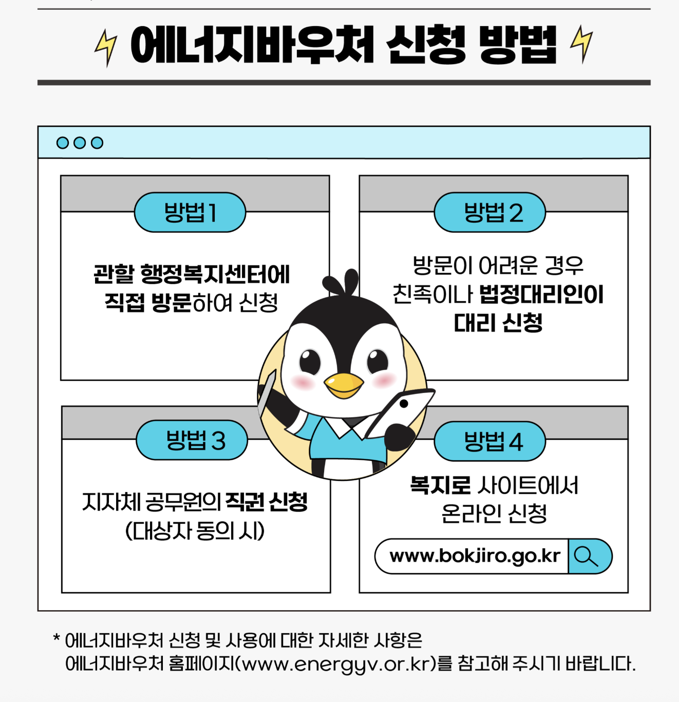 이를 통해 본인이 받은 혜택을 남김없이 활용하고, 사각지대 없이 따뜻한 겨울과 시원한 여름을 보낼 수 있습니다.