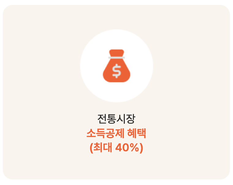 - 소득공제 적용 가능: 전통시장에서 사용한 금액은 최대 40%까지 소득공제를 받을 수 있음