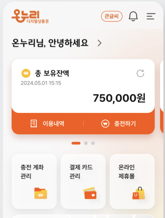 각 은행 앱 또는 디지털 온누리상품권 통합 앱에서 상품권 충전, 사용, 잔액 확인 등이 모두 가능하니 자신에게 맞는 플랫폼을 활용하면 좋습니다.
